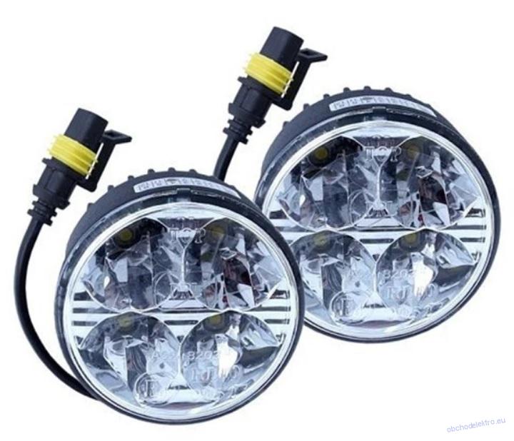 Homologovaná světla pro denní svícení, napájení 12/24 V. Každé světlo je osazeno 4x vysoce svítivou HI POWER LED diodou.